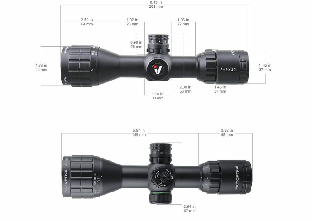 De VictOptics C3 3–9x32 Mil-Dot is een compacte richtkijker met variabele vergroting, bedoeld voor gebruik binnen de schietsport. De richtkijker is voorzien van een verlicht Mil-Dot draadkruis, waarbij de kleur instelbaar is op rood of groen. Dankzij het compacte formaat en het lage gewicht is deze richtkijker geschikt voor diverse toepassingen op korte tot middellange afstand.